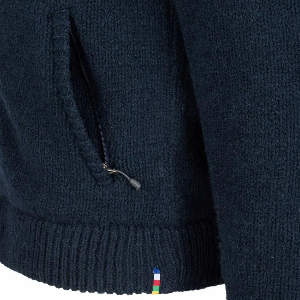 Das Außenmaterial der Jacke besteht aus dicker Lammwolle. Diese spendet dir jede Menge Wärme und ist zudem natürlich geruchshemmend und feuchtigkeitsleitend. Innen sorgt weiches Fleece für Komfort. Die Arme hingegen sind mit einem Taftfutter versehen, welches dir das Hineinschlüpfen in die Wolljacke erleichter.