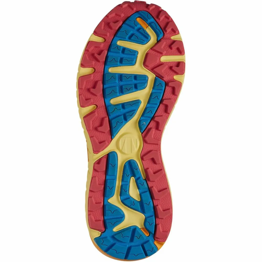 Beim Obermaterial wird auf ein leichtes und luftiges, aber dennoch robustes Mesh-Gewebe gesetzt. Um das Risiko von Blasenbildung zu minimieren wird beim Trailrunningschuh außerdem sofern möglich auf innenliegende Nähte verzichtet. Im Zehen- und Fersenbereich ist der Schuh verstärk, um auch in schwierigem Gelände bestmöglichen Schutz bieten zu können.