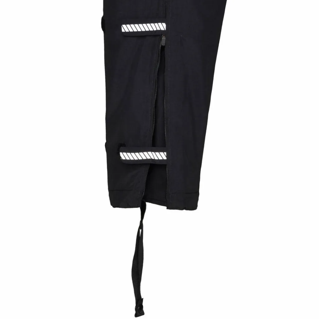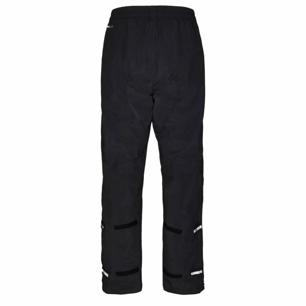 Am unteren Bein befindet sich ein ca. 35 cm langer Reißverschluss. Der erlaubt es dir, schnell in die Regenhose zu schlüpfen, ohne deine Schuhe ausziehen zu müssen. Zwei Klettverschlüsse dienen der Beinweitenregulierung.