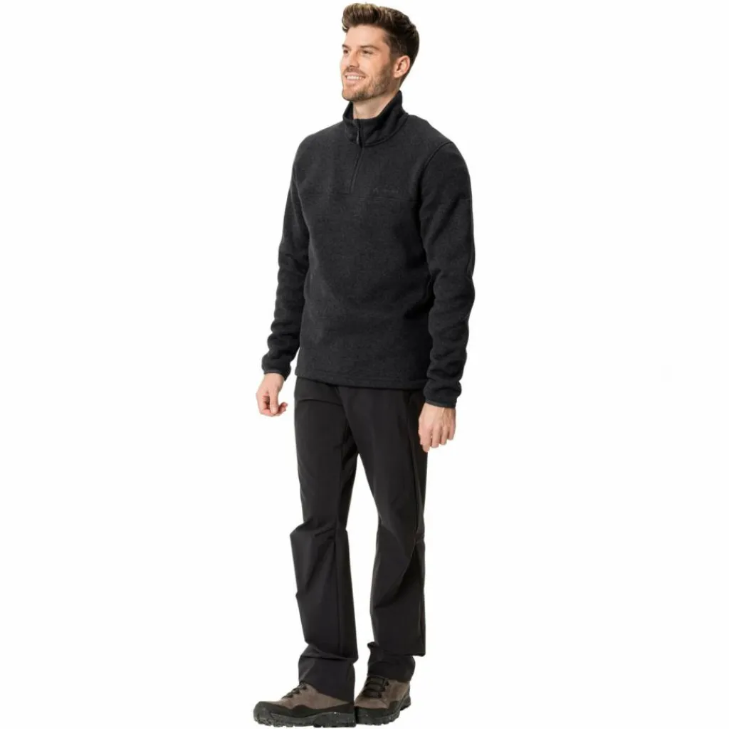 Der Pullover im klassischen Troyer-Stil hat eine Außenseite aus robustem Strickfleece und eine weich aufgebürstete Innenseite, die direkt zum Einkuscheln einlädt. Der Pullover spendet angenehme Wärme an kühlen Tagen und sorgt dank feuchtigkeitsleitender und schnelltrocknender Eigenschaften auch beim aktiven Einsatz für trockenen Tragekomfort.