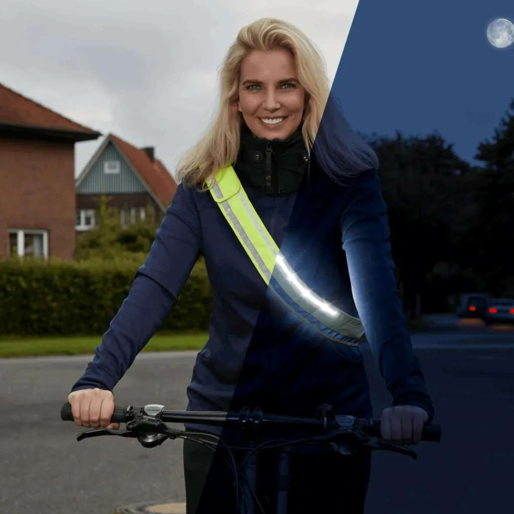 Dieser Gurt macht dich dank hell leuchtender LEDs vorne und hinten sehr gut sichtbar. Er lässt sich kompakt verstauen und ist dann einsatzbereit, wenn du ihn benötigst. Einfach praktisch!