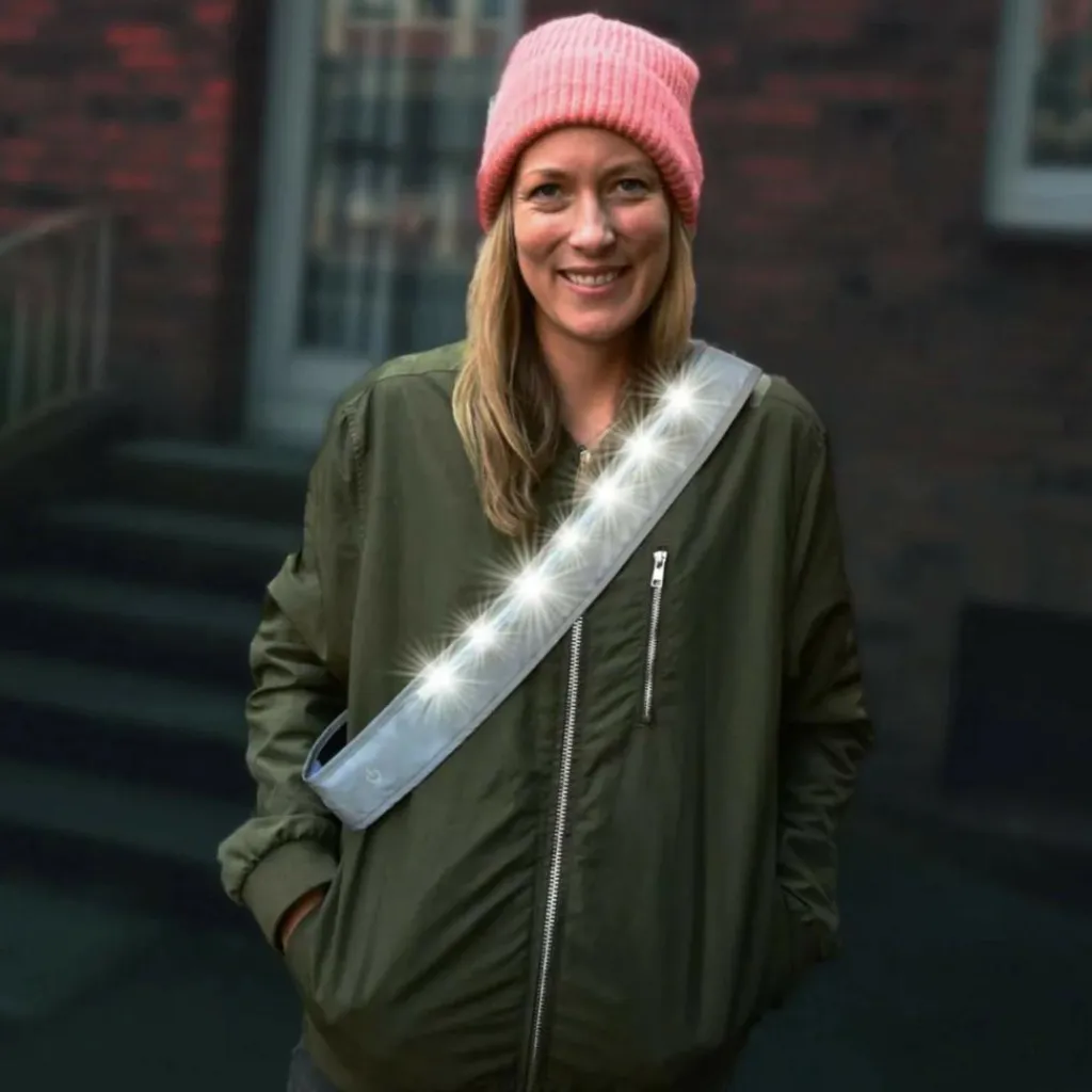 Durch die leuchtenden LEDs bist du mit dem High Visibility Strap schon sehr früh zu sehen: Laut heyReflect dreimal früher als bei Warnwesten ohne LED-Beleuchtung. Der LED-Gurt hat vorne weiße und hinten rot leuchtende Leuchtdioden. So sieht man dich auch, wenn du dich nicht direkt im Lichtkegel zum Beispiel eines Autoscheinwerfers befindest.