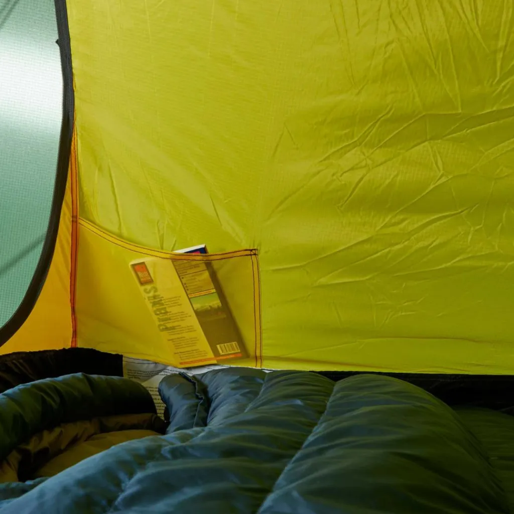 Tunnelzelt für drei Personen. Die abfallende Konstruktion und die perfekt abgestimmte Materialauswahl, macht es zu einem leichten und dennoch ganzjährig einsetzbarem Zelt.