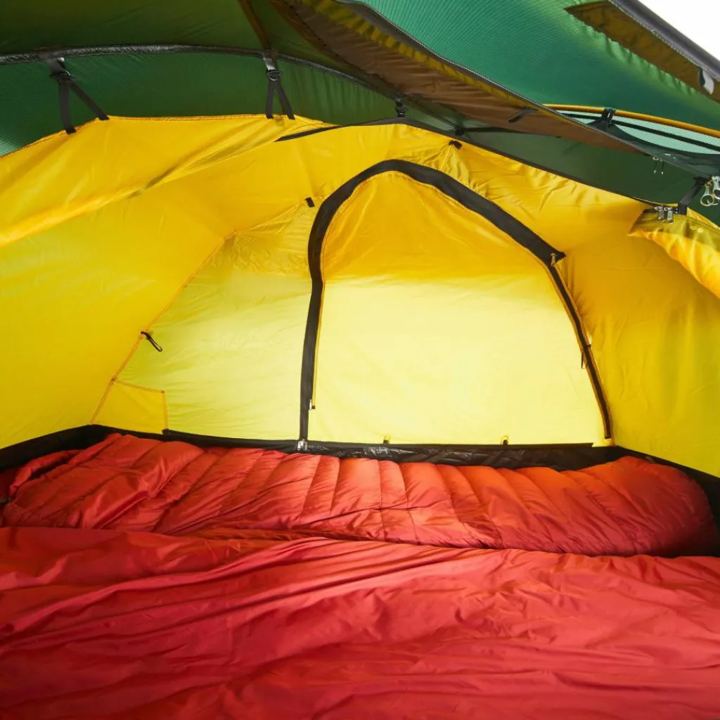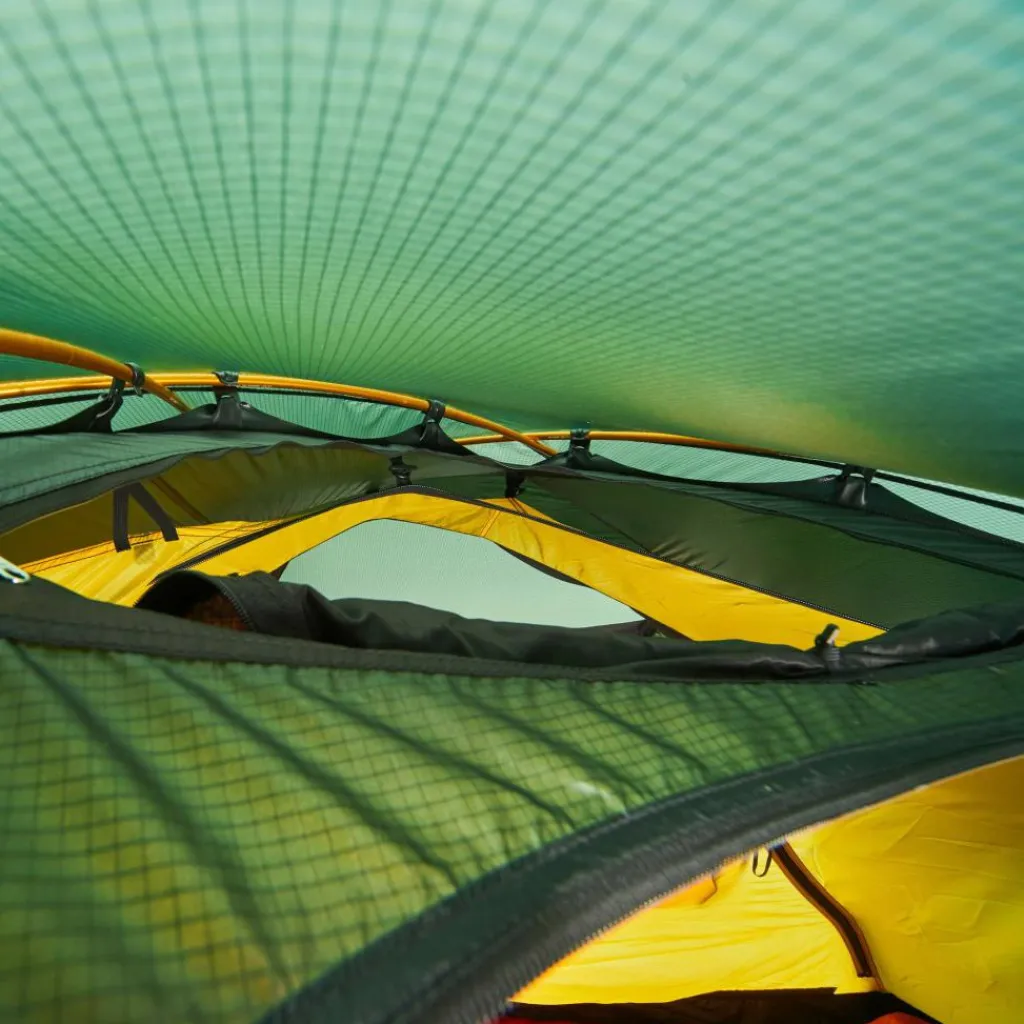 Als Material wird Kerlon 1200 Gewebe verarbeitet, das eine Weiterreißfestigkeit von 12 kg besitzt. Das Gestänge ist 9 mm dick und somit für normale Schneefälle und starke Herbststürme ausreichend gewappnet. Das Außenzelt reicht bis zum Boden, damit kein Schnee zwischen Innen- und Außenzelt geweht werden kann. Mindestens ein hoch angebrachter Lüfter lässt die Luft im Zelt gut zirkulieren.