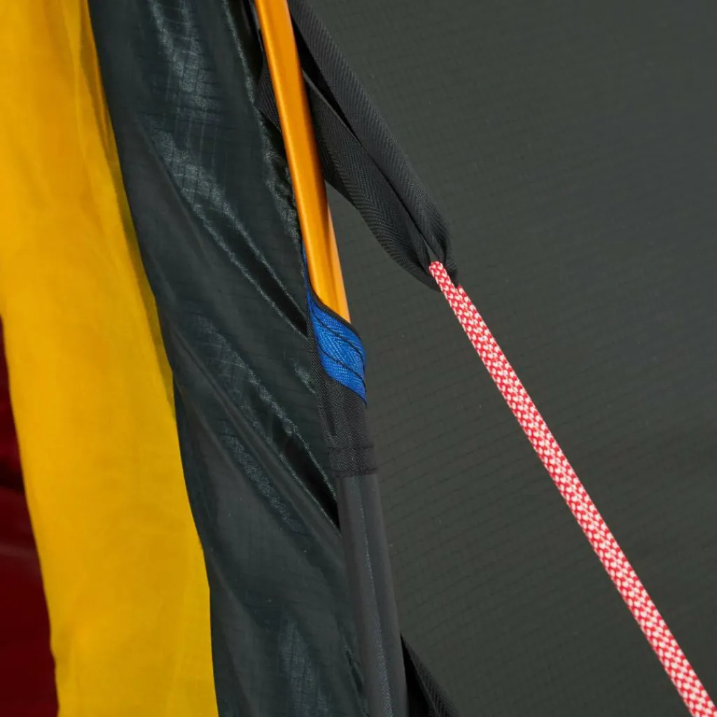 Alle drei Stangen sind gleich lang und kreuzen sich in der Kuppel, was dem Allak Stabilität verleiht. Dabei musst du die Stangen lediglich von einer Seite einschieben, was den Aufbau deutlich erleichtert. Durch das eingehängte Innenzelt baust du Innen- und Außenzelt gleichzeitig auf, wodurch auch bei Regen ein trockener Innenraum zur Verfügung steht.