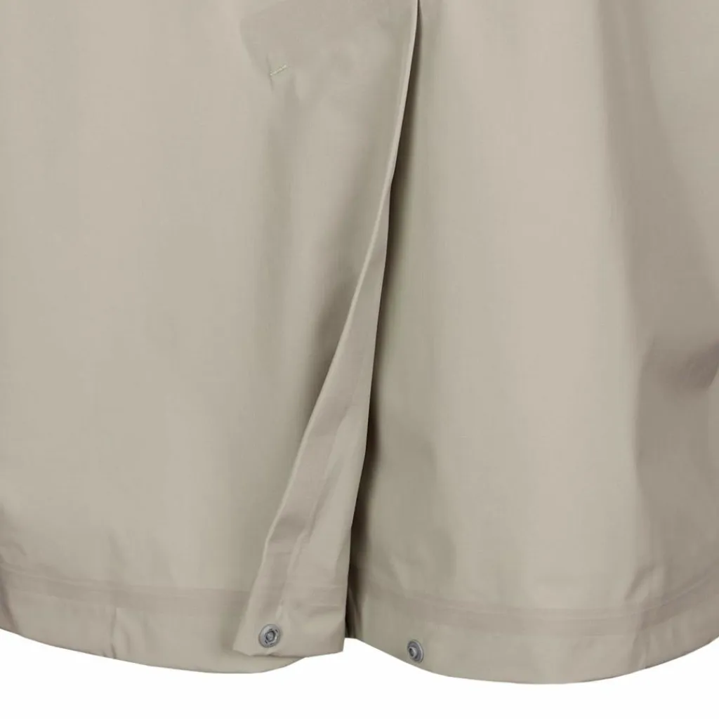 Trotz hoher Funktionalität bleibt der Komfort bei der Regenjacke nicht auf der Strecke. Die bequeme Passform gibt dir Bewegungsfreiheit und macht die Hardshell zu einem echten Allrounder für das ganze Jahr. Denn durch den Schnitt passt problemlos eine kuschligwarme Zwischenschicht drunter. Durch den unterlegten 2-Wege-Front-RV und die tiefe Falte am Rücken gewinnst du noch mehr Bewegungsspielraum.