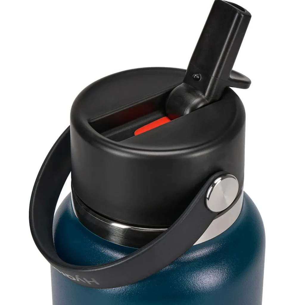 Vakuumisolierte Edelstahltrinkflasche mit isoliertem Schraubverschluss, der ein Mundstück mit Strohhalm besitzt. Dieser ermöglicht dir das Trinken in senkrechter Flaschenposition.