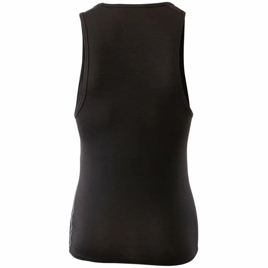 Dieses ärmellose Shirt aus einer weichen Merinowollmischung hat einen recht körperbetonten Schnitt, genau so wie es zum Drunterziehen sein soll.
