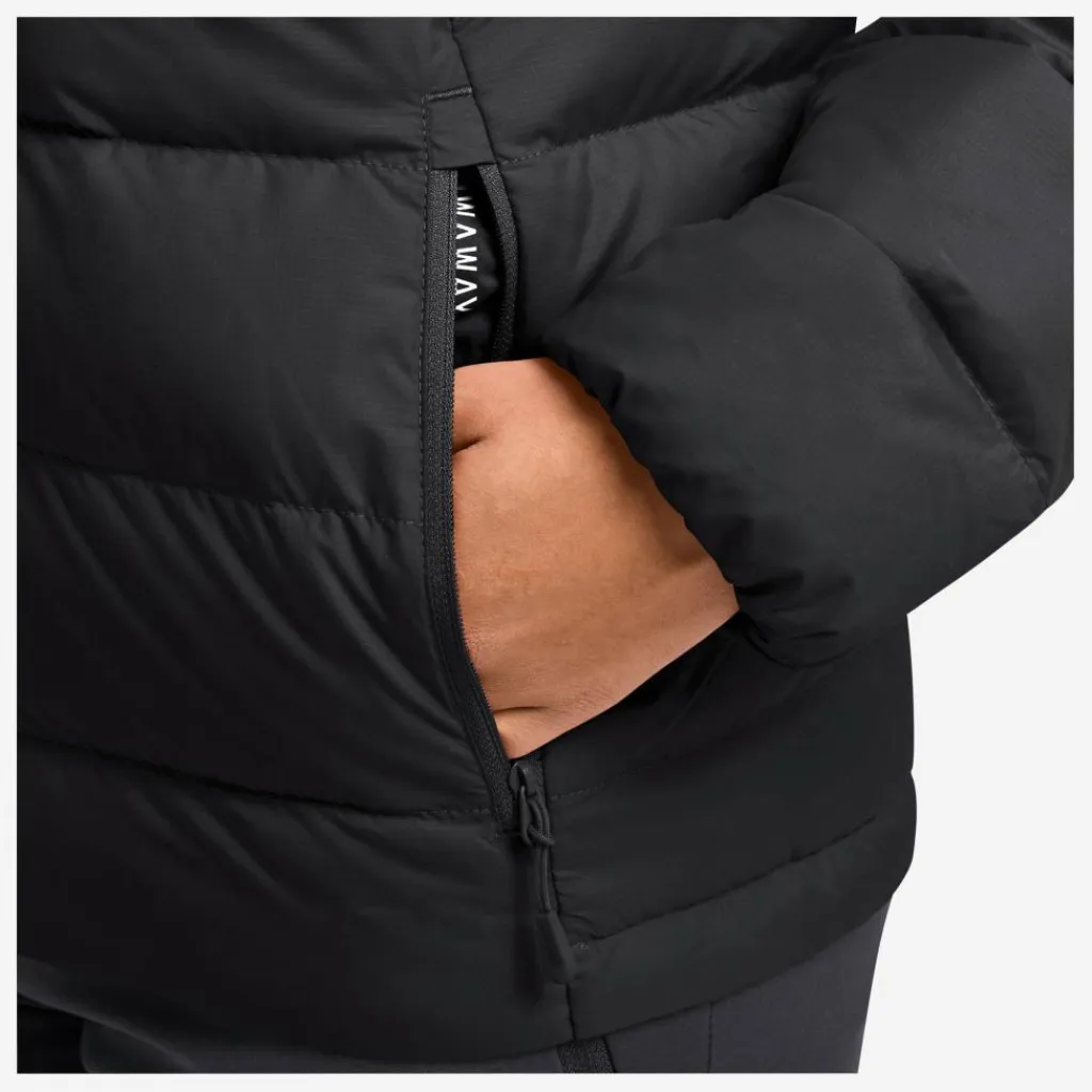 Den Saum kannst du über einen Schnürzug deinen Bedürfnissen anpassen. Der durchgehende Reißverschluss ist unterlegt, sodass es Wind und Kälte auch hier schwer haben. Für schnell erreichbare Habseligkeiten ist die Daunenjacke mit zwei seitlichen RV-Taschen ausgestattet. Sie lässt sich zudem sehr leicht verstauen.