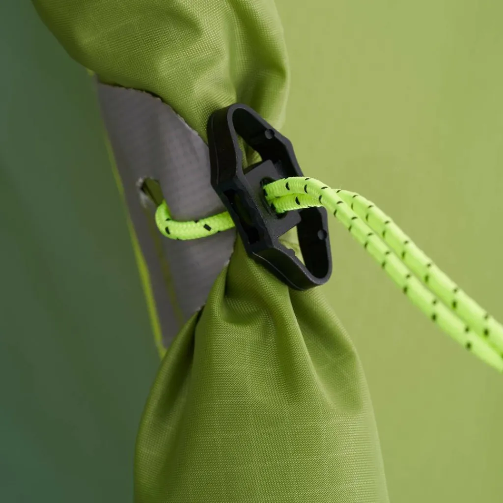 Der Aufbau gestaltet sich denkbar einfach. Nachdem das Innenzelt einfach an das Gestänge geclipt wird, wird das Außenzelt übergeworfen. Dank dieser Konstruktion hast du sogar die Möglichkeit, das Außenzelt in tropischen Nächten komplett wegzulassen. Zudem kann das Zelt mit nur zwei Heringen aufgestellt werden, sodass du bei der Zeltplatzwahl beispielsweise beim Paddeln an felsigen Ufern etwas flexibler bist.
