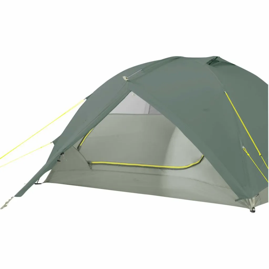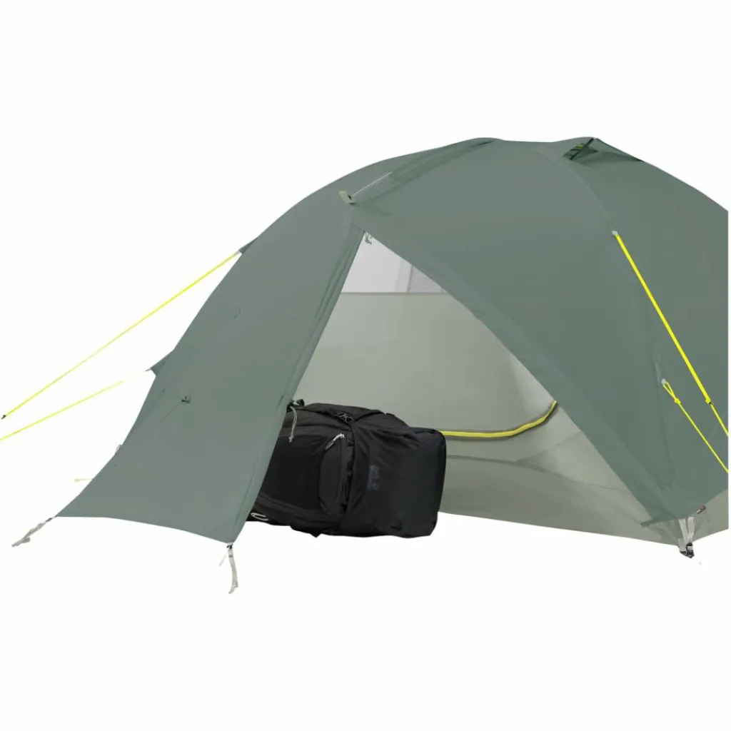 Außenzelt, Innenzelt und Boden bestehen aus ultraleichtem 20D Ripstop Nylon und wurde zu 100 % recycelt. Das Thema Nachhaltigkeit wird auch bei der PFC-freien Imprägnierung mitbedacht und macht beim Gestänge keinen Halt. Hier fiel die Wahl auf hochwertiges DAC-Gestänge, das im Green Anodizing Verfahren veredelt wurde. Hierbei wird auf den Einsatz von Phosphor- und Salpetersäure verzichtet und der gesamte Herstellungsprozess umweltschonender gestaltet.