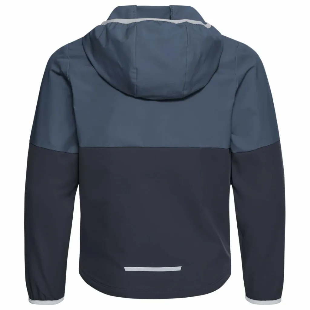 Kommt eine kühle Brise auf, steht eine festverbundende Kapuze mit Elastikeinfassung zur Verfügung. Elastische Ärmelbündchen unterstreichen die Gemütlichkeit der Softshelljacke. Zwei mit einem Meshfutter versehene Reißverschlusstaschen bieten Platz für Smartphone und anders Kleinigkeiten. Bei schummrigen Lichtverhältnissen tragen reflektierende Designelemente zur Sichtbarkeit deiner Kinder bei.