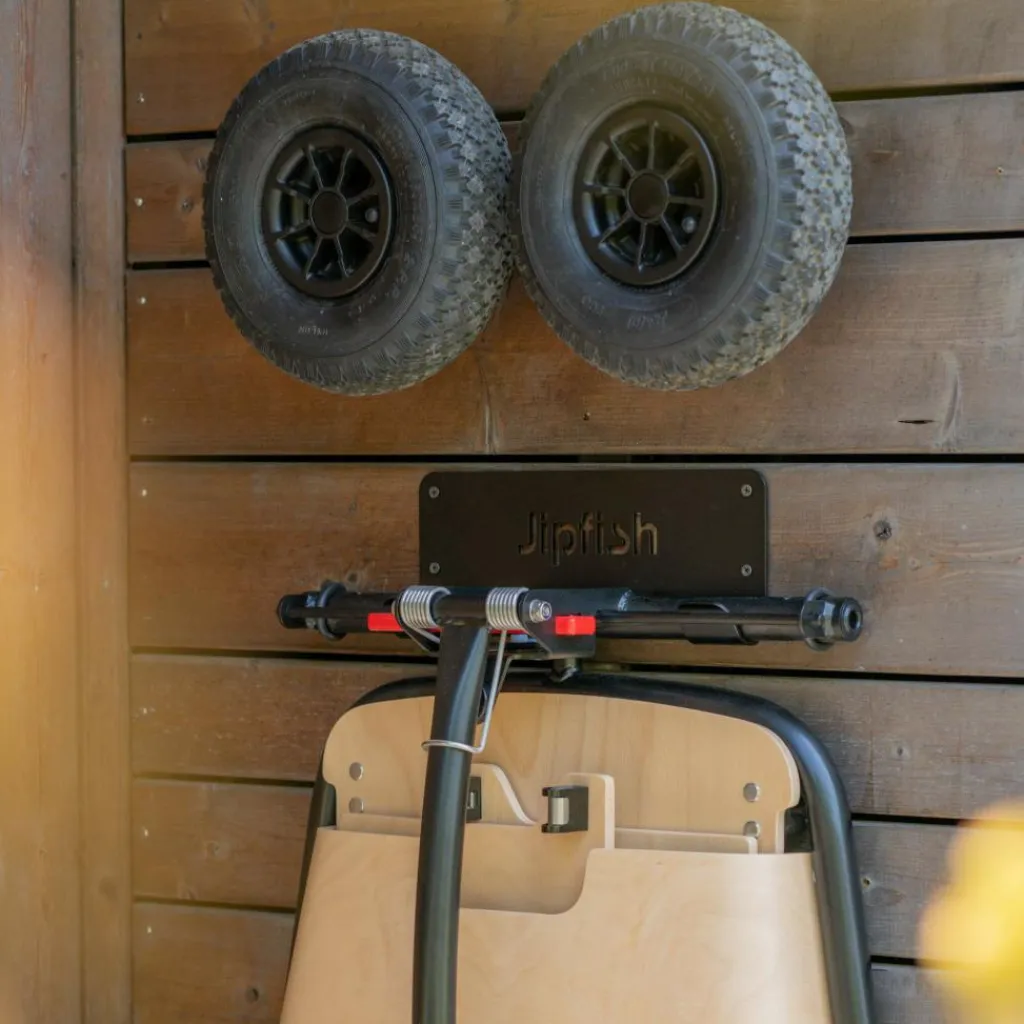 Mithilfe des Wandhakens kannst du deinen zusammengeklappten Jipfish sowie die Reifen platzsparend an der Wand befestigen. So ist der Bollerwagen griffbereit, wenn du ihn brauchst.
