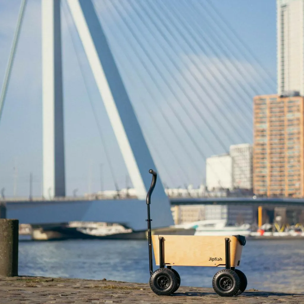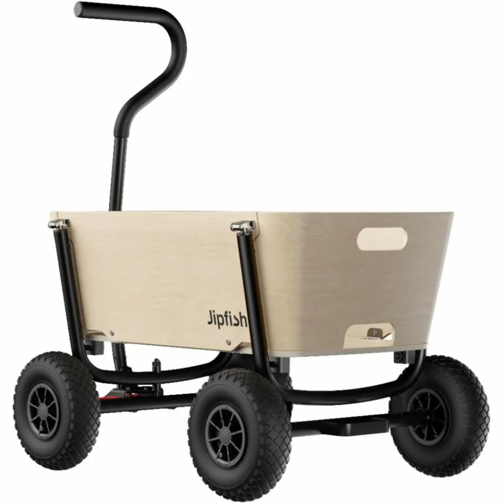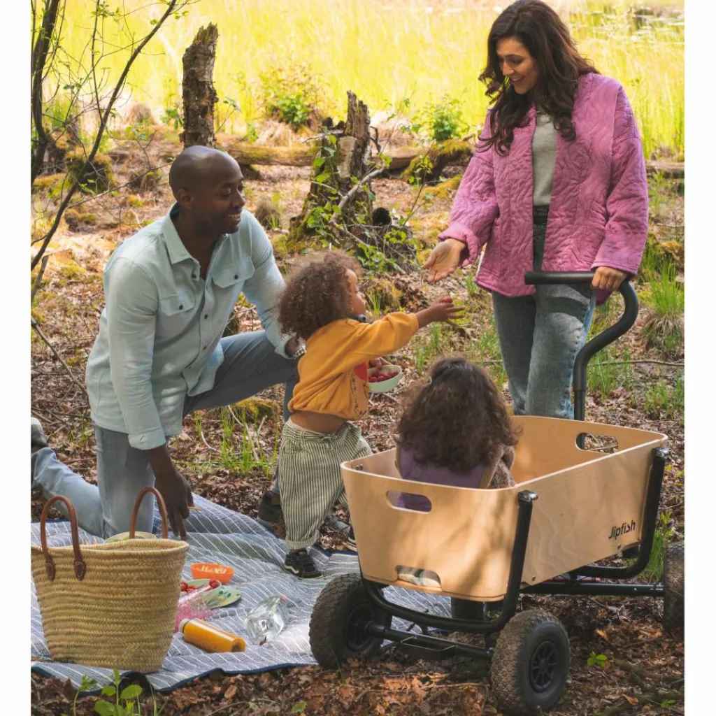 Familienzeit mit Stil: Der Jipfish fällt mit seinem modernen Design aus Naturholz sofort ins Auge. Auch funktional überzeugt der Bollerwagen auf ganzer Linie und punktet mit sekundenschnellem Aufbau.