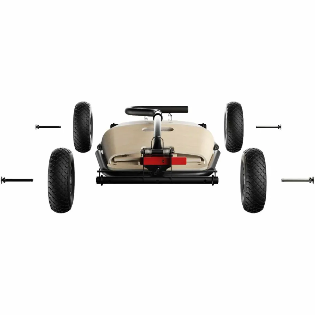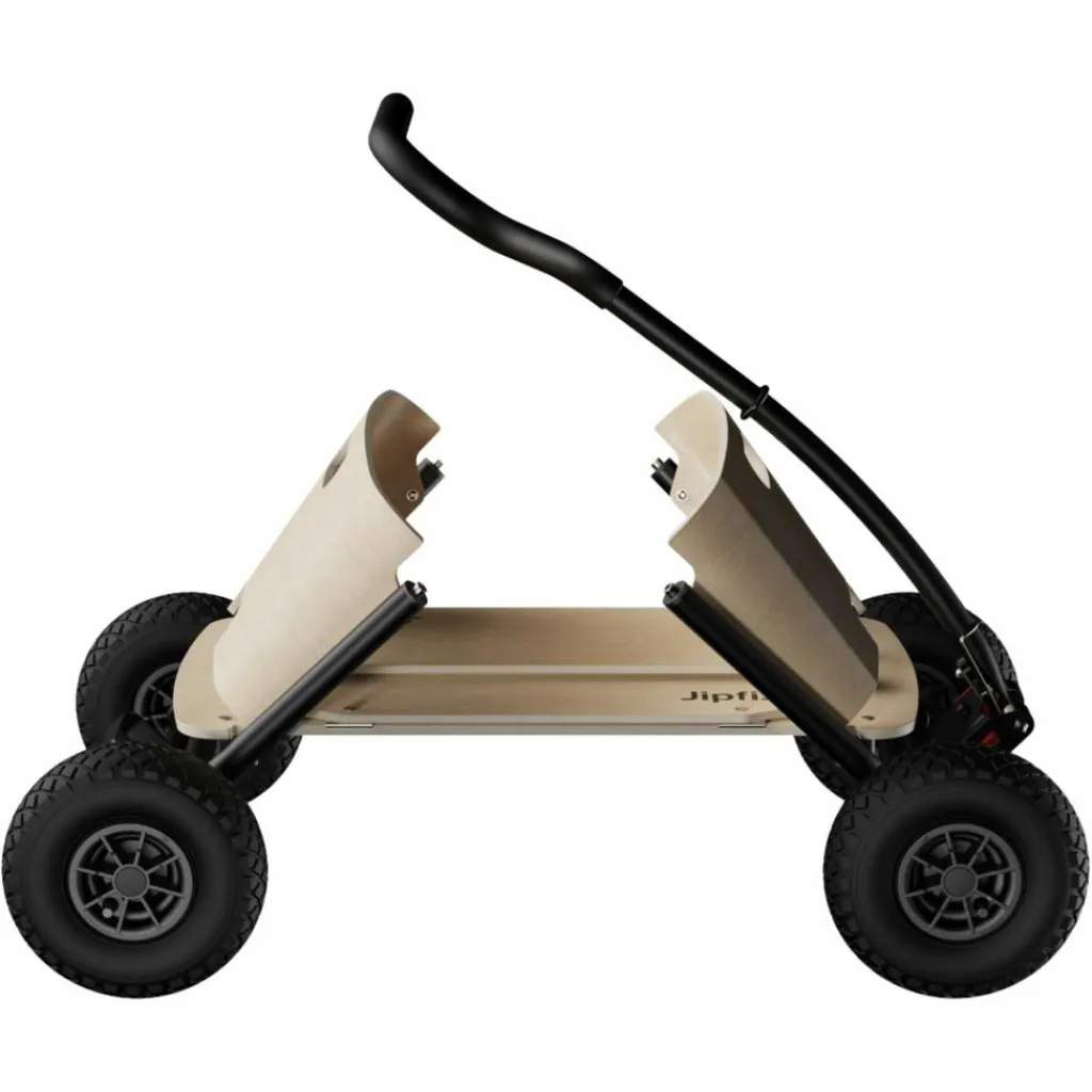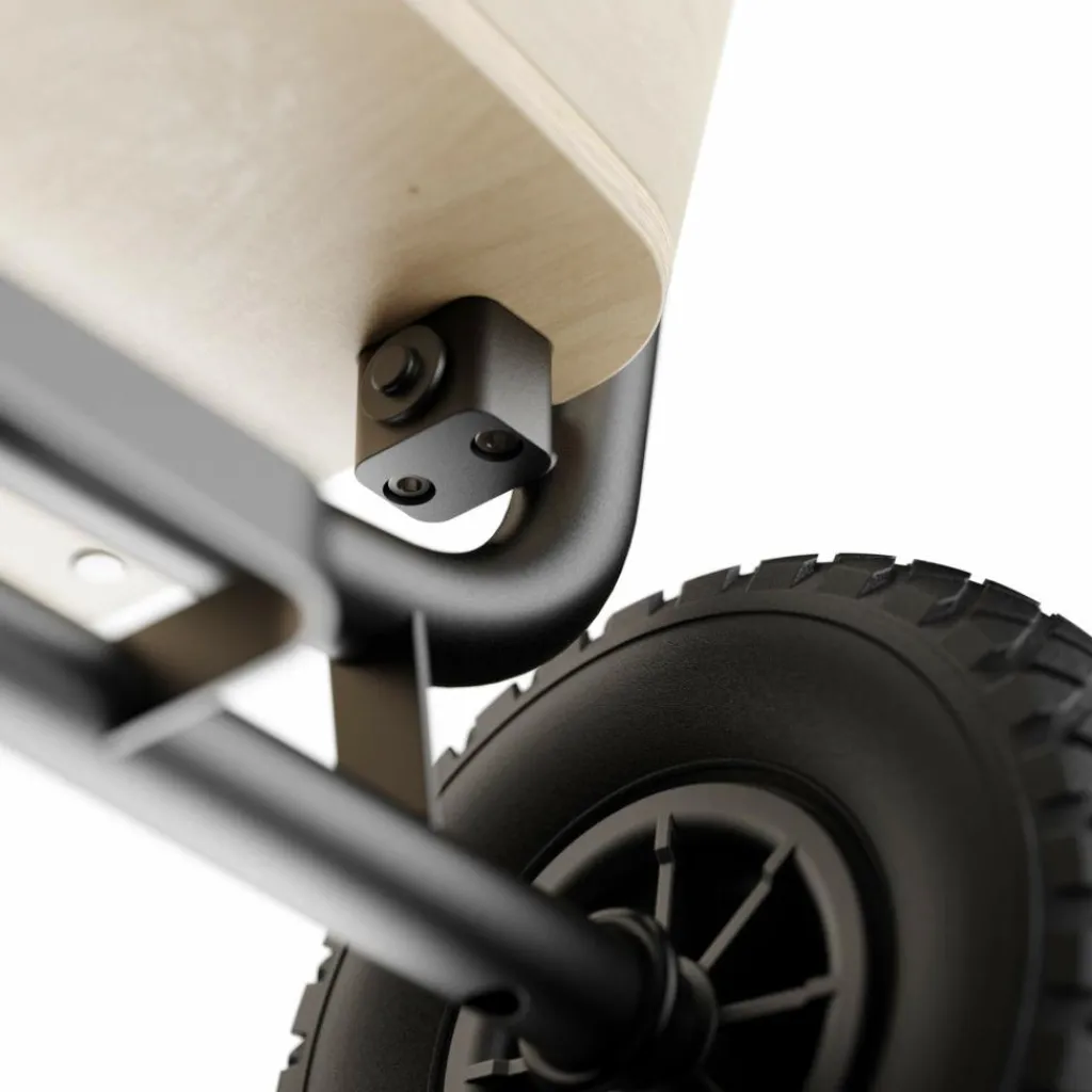 Kinder lassen sich nicht von Waldwegen, Sand oder Matsch abschrecken – im Gegenteil! Damit sich der Bollerwagen auch abseits asphaltierter Straßen entspannt ziehen lässt, ist der Jipfish mit großen luftgefüllten Gummireifen und doppelten Kugellagern ausgestattet. So sind auch viel Gewicht oder Unebenheiten im Untergrund kein Problem. Der pulverbeschichtete Stahlrahmen bietet dabei eine maximale Traglast von 80 kg – mehr als genug für zwei Kinder, Getränkekisten oder Campingmöbel.
