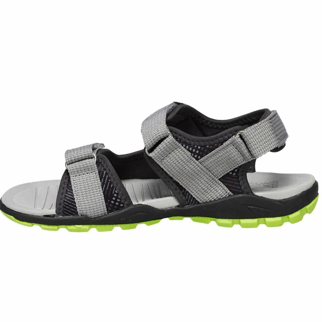 Absolut gelungen und schlicht und ergreifend praktisch. Mit drei regulierbaren Klettriemen, rutschhemmendem Fußbett und griffigem Sohlenprofil.