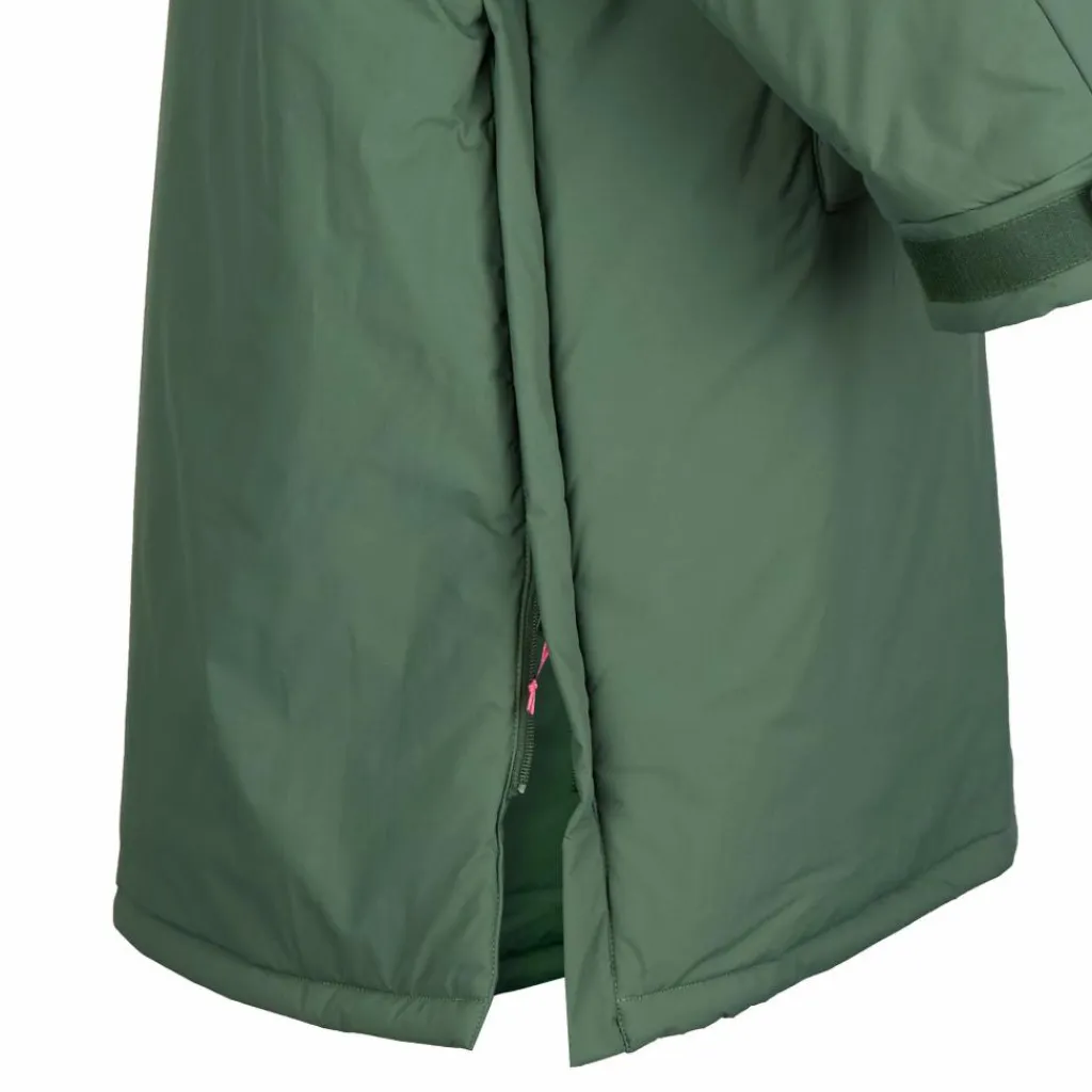 Das Außenmaterial ist wasserabweisend imprägniert, sodass Wassertropfen einfach abperlen. Die nässeunempfindliche Kunstfaser-Isolierung und das strategisch platzierte Teddyfutter sorgen für wohlige Wärme an kalten Herbst- und Wintertagen. Die gefütterte Kapuze und der hohe Kragen bieten zusätzlichen Schutz vor kaltem Wind.