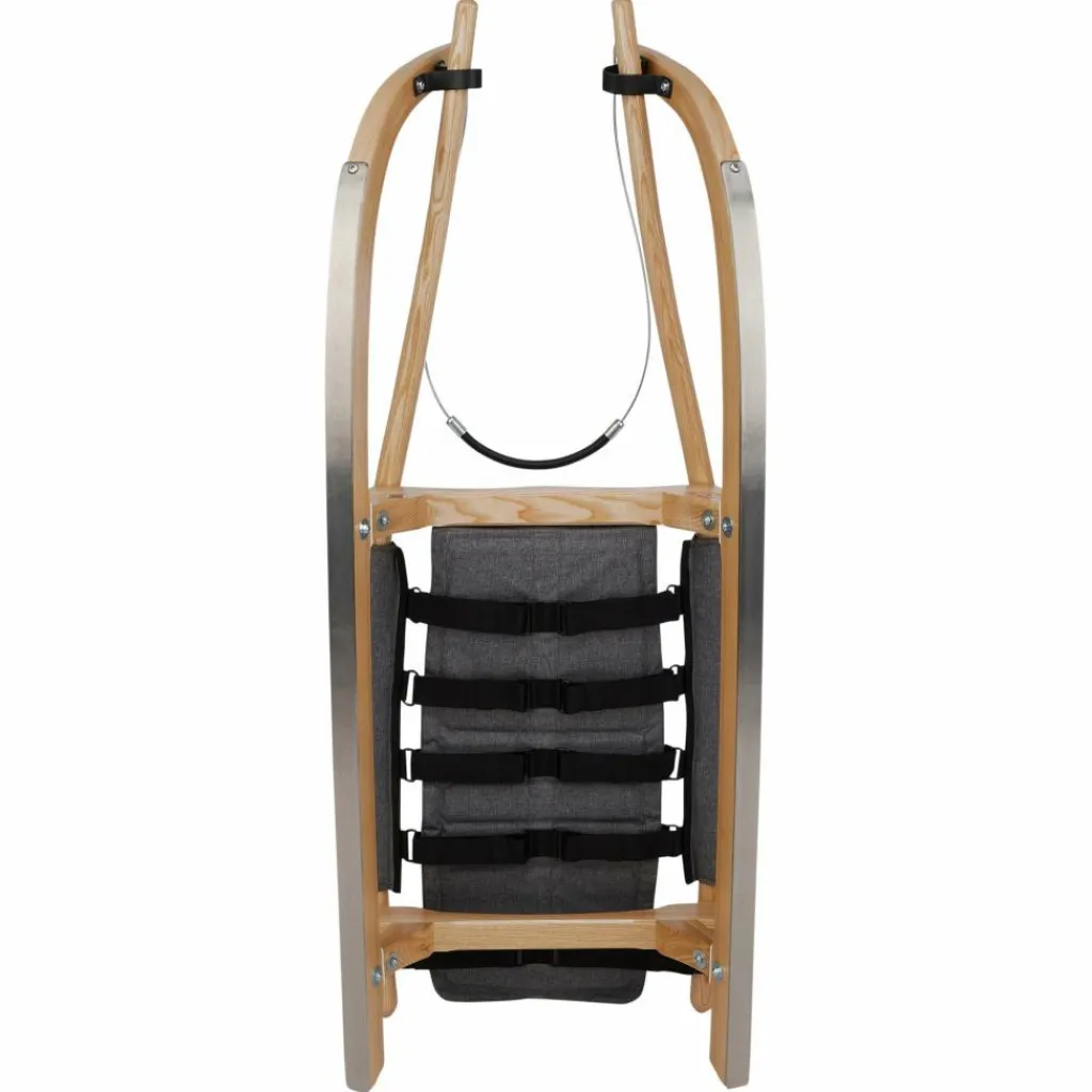 Durch seine verlängerte Sitzfläche ist diese Version des Tiroler Rennsportrodels für einen Erwachsenen und ein Kind ideal. Der Rodel liegt sicher in der Kurve und lässt sich ausgezeichnet Lenken.
