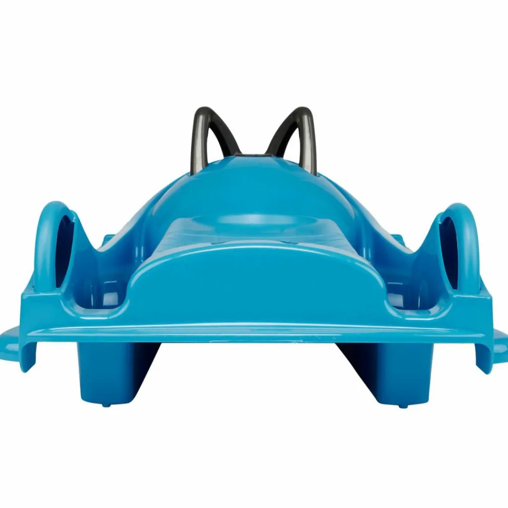 Der sportliche Rennbob für Kinder ab 6 Jahren ist mit einem patentierten Lenksystem ausgestattet. Besonders bequem daran ist, dass der Lenkbug vorne erhöht ist. In Kombination mit dem ebenfalls etwas erhöhten Sitz und Profilen für die Füße können die Kids so mit gutem Halt und in einer angenehmen Sitzposition ins Rennen gehen.