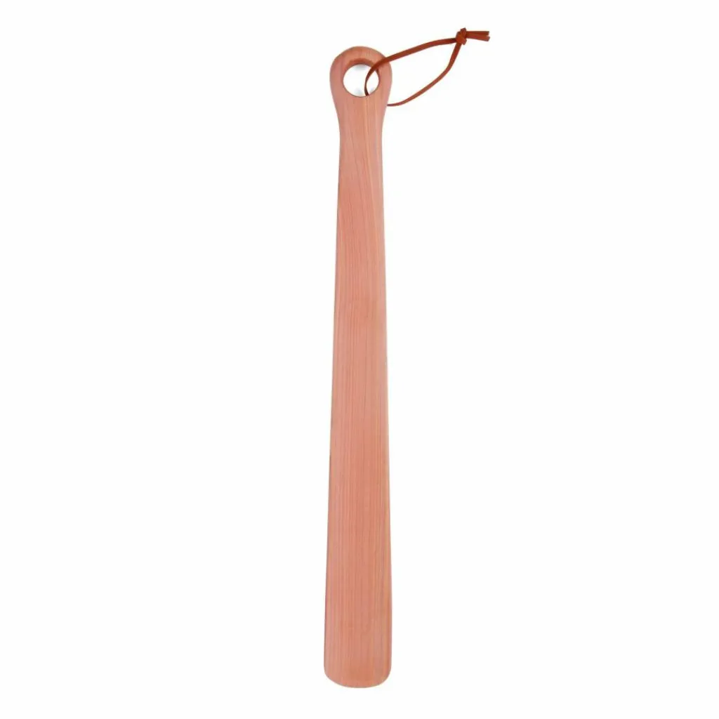 34 cm langer Schuhlöffel/Schuhanzieher aus schönem Zedernholz. Damit hast du deine Schuhe im Nu an – ohne zu viel Bückerei.