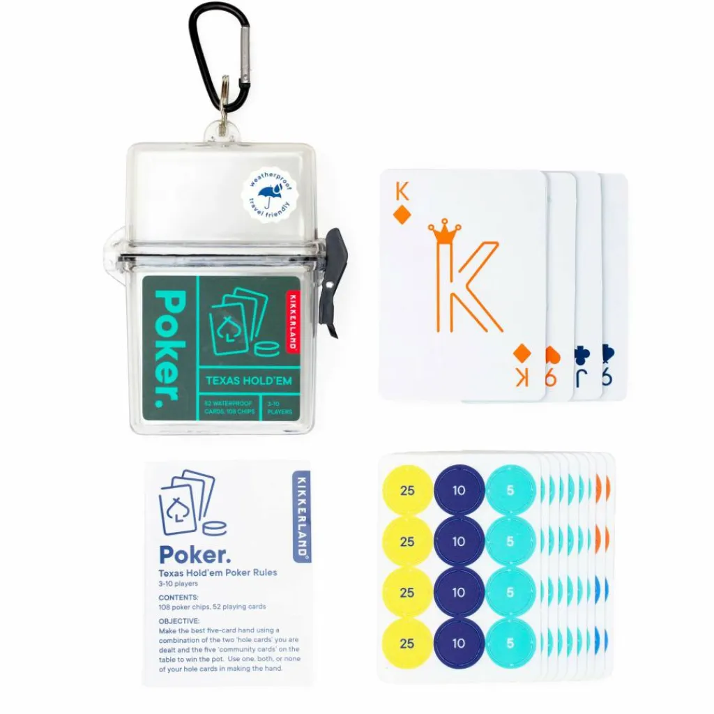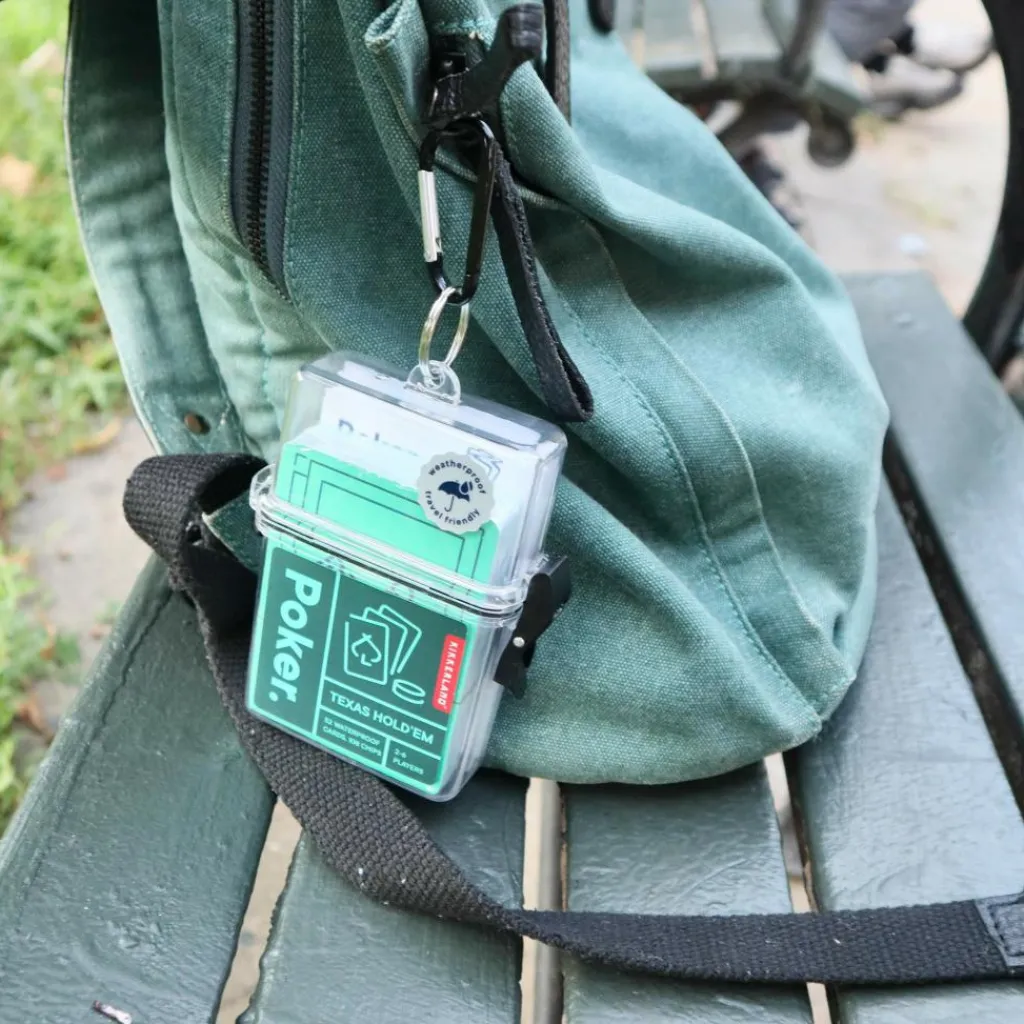Wer in der Natur nicht auf eine kleine Pokerrunde verzichten möchte, ist mit diesem Poker-Spiel gut ausgerüstet. Praktisch: Alle Utensilien fürs Pokern kommen in einer wasserdichten Box mit Karabiner.