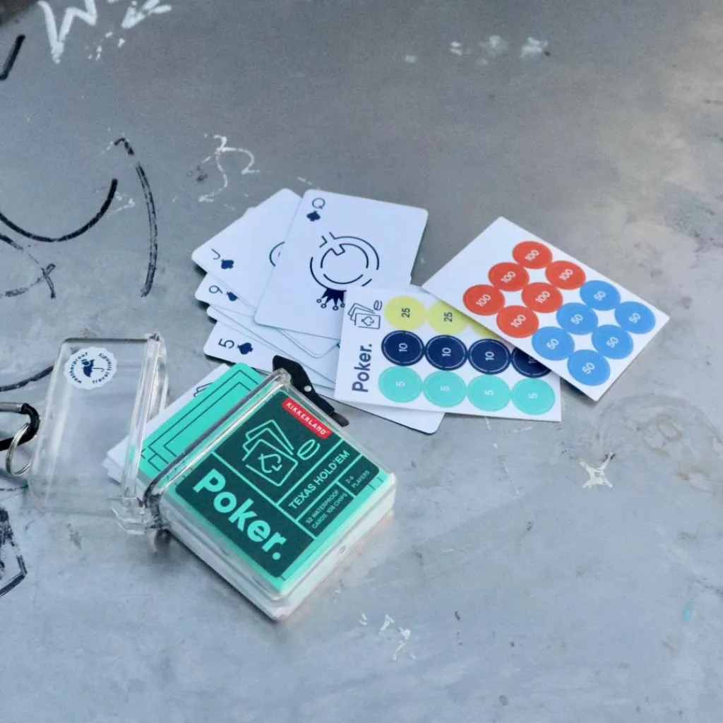So kannst du das Spiel unkompliziert etwa an deinen Rucksack anhängen und hast es griffbereit, wenn die Runde im Camp am Lagerfeuer beginnen soll. Die wetterfeste Box (nach IPX5) enthält ein Kartenspiel, Pokerchips und eine Anleitung.