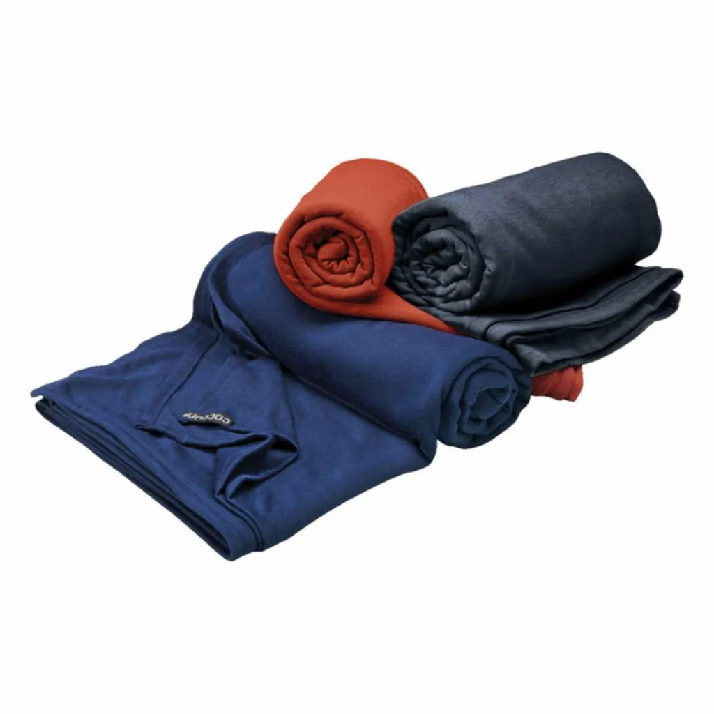 Luxuriöse, leichte Reise-Decke aus Merinowolle und Seide. Sie besitzt eine ausgezeichnete Wärme-Regulation, leitet Feuchtigkeit ab und hält den Körper trocken.