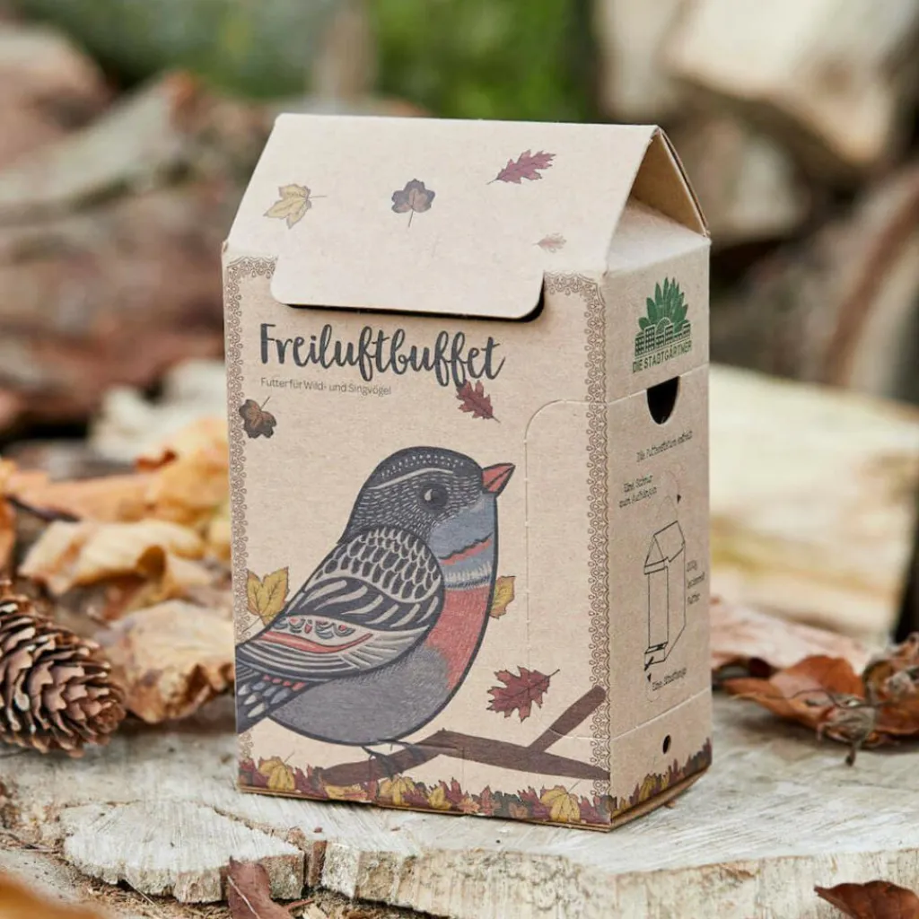Hier darf nach Lust und Laune geschlemmt werden! Üppig gefüllt mit körnigen Köstlichkeiten ist das Freiluftbuffet eine beliebte Raststätte für alle Vögel in der Umgebung – zum Erholen und Krafttanken.