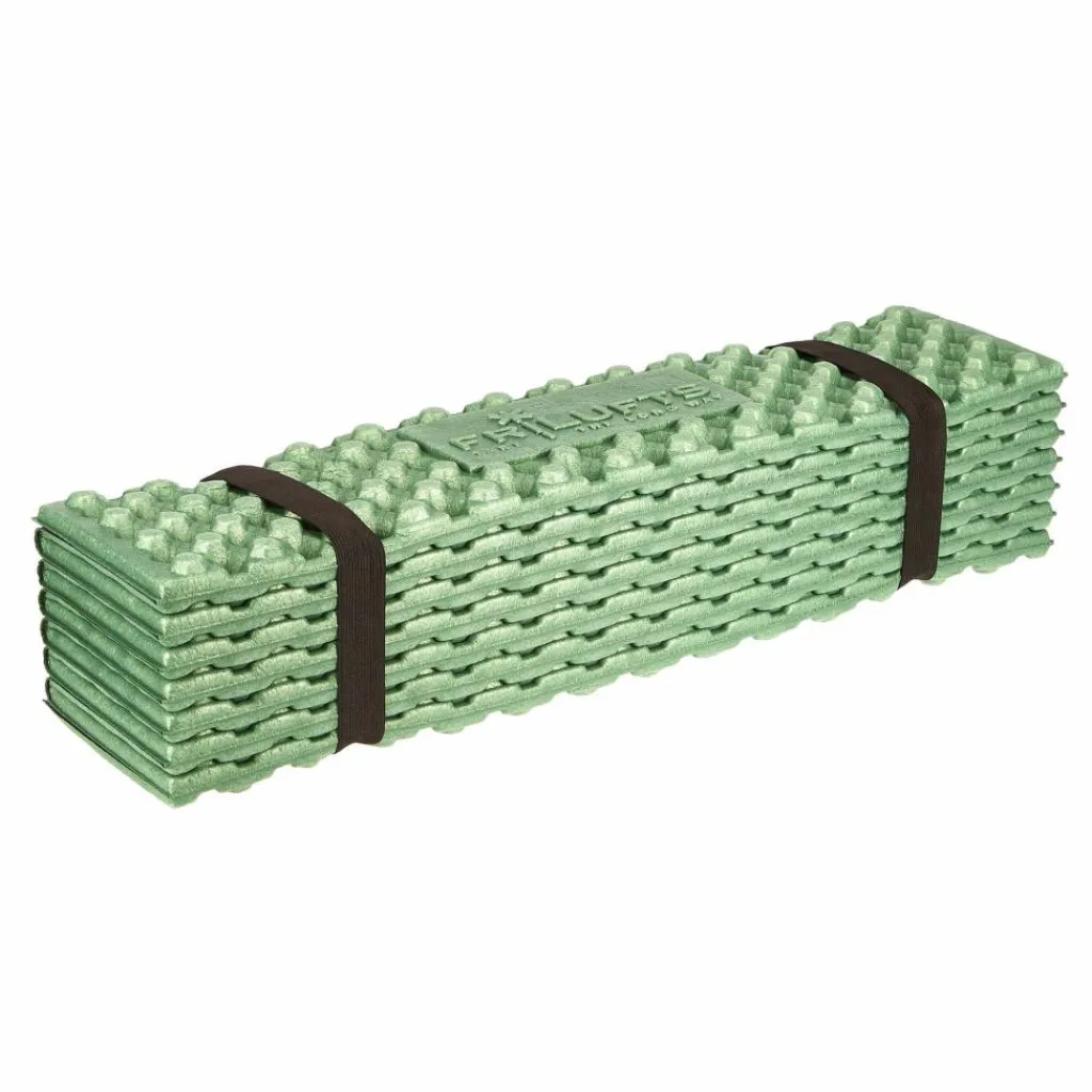 Einfache, faltbare Isomatte. Die Dots machen die Matte nicht nur weicher und bequemer, sondern schließen auch die Luft zwischen Matte und Körper ein. Dadurch bietet sie ein besseres Isoliervermögen.