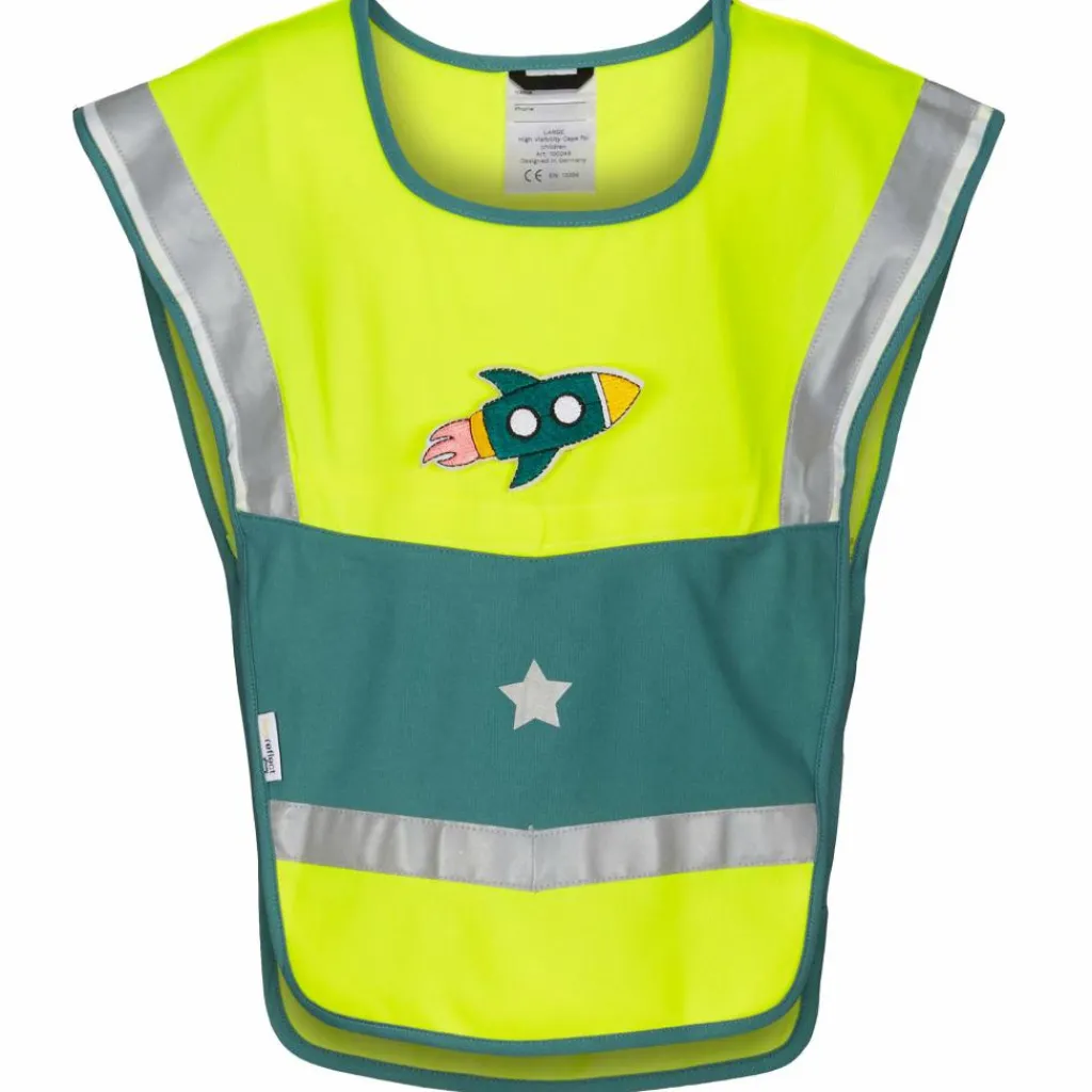 Praktisch: Das Cape ist waschbar, wenn du den Akku vorab herausnimmst. Passt fast immer und ist fix angezogen: Dein Kind kann das High Visibility Cape sowohl über einer Jacke als auch ohne eine Jacke tragen. Rakete, Regenbogen und Co. lassen sich übrigens abnehmen und tauschen. Diese hübschen Patches sind mit Klett ausgestattet.