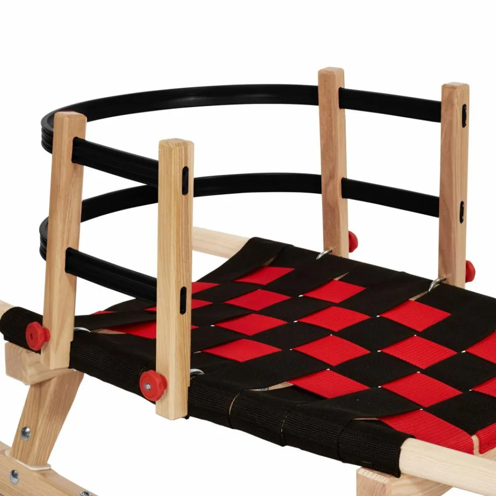 Mehr Sicherheit für Nachwuchsrodler: Die flexible Lehne aus Kunststoff, mit vier Holzstreben zur Stabilisierung, kann an allen Kathrein Tourenrodeln mit Gurtbandsitzen fixiert werden.
