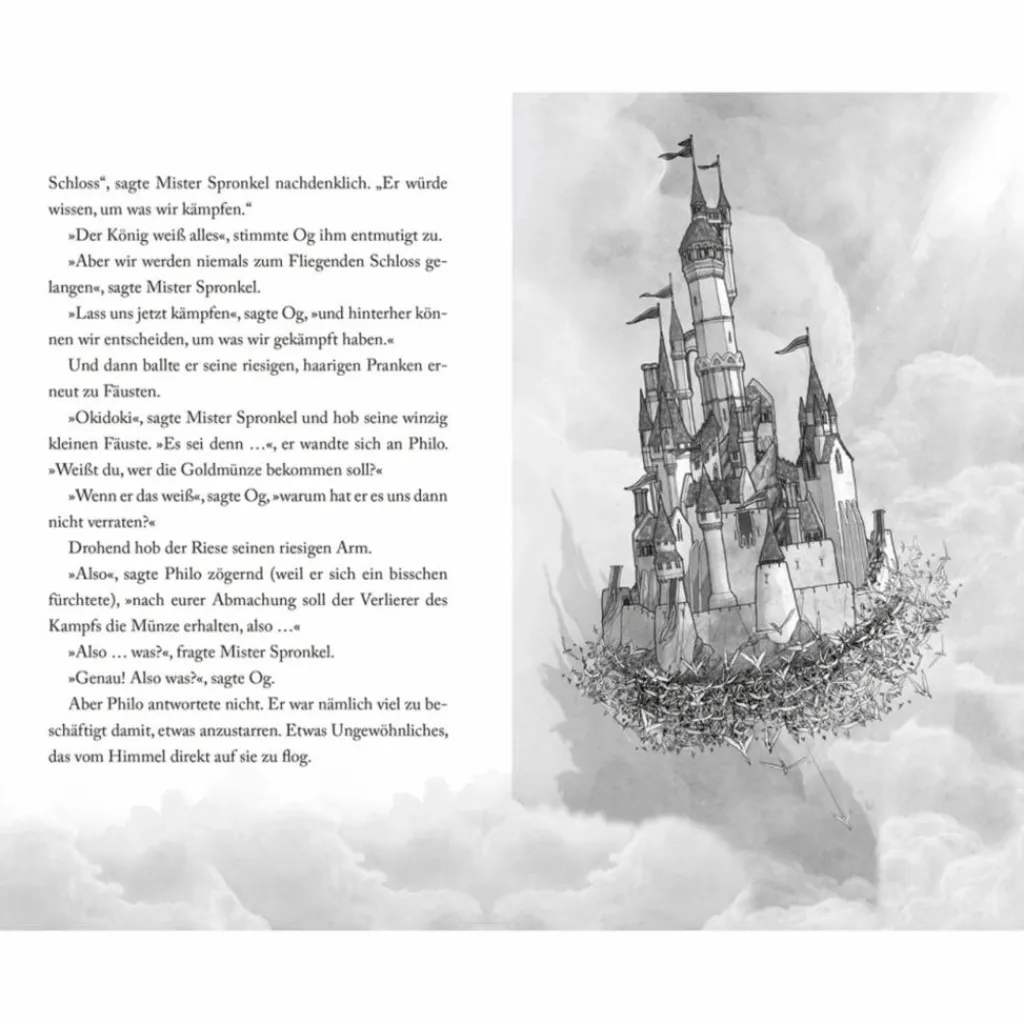 Eines Tages purzelt aus der Pendeluhr ein kleiner Kobold, der auf der Suche nach dem König ausgerechnet in Philos Flur landet. Philo folgt ihm in ein merkwürdiges Land voller kniffliger Rätsel und Paradoxen, ein Ort, an dem wirklich nichts einen Sinn ergibt. Nur einer kann Ordnung in das Chaos bringen und Philo dabei helfen, nach Hause zu kommen: der König! Doch der ist vor einer Ewigkeit mit seinem fliegenden Schloss aufgebrochen und niemand hat es bisher geschafft, einen Weg zu ihm zu finden.