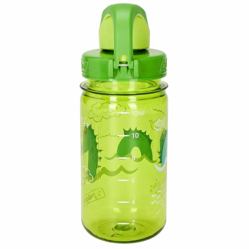 Der Verschluss der OTF ist auslaufsicher und kann mit einem kleinen Drahtbügel gesichert werden. Wird dieser nach unten geklappt, genügt ein leichter Druck auf das Nalgene-Logo, um den Deckel zu öffnen. Der Henkel ermöglicht bequemes Tragen oder die Befestigung der Flasche mit einem Karabiner am Rucksack.