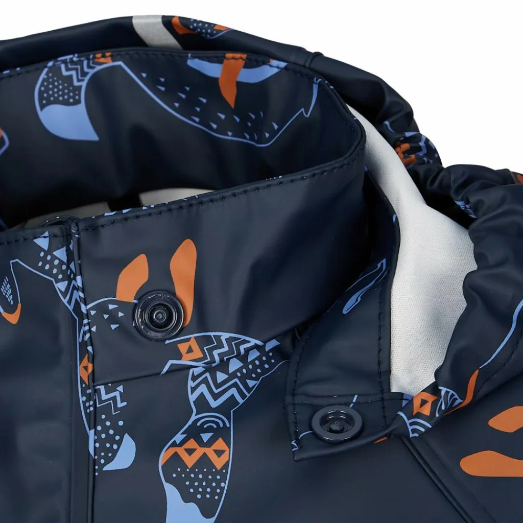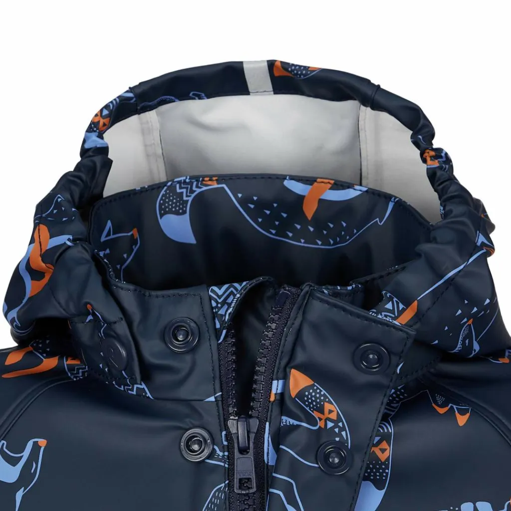 Den hervorragenden Wetterschutz ergänzt die schützende Kapuze, die sich problemlos abnehmen lässt, wenn sie nicht benötigt wird. Zusätzlich hält die Windschutzleiste über dem RV kalte Luft draußen. Damit deine Kinder zudem bequem toben können, ist das Material angenehm flexibel. Perfekt für dunklere Regentage: Reflektierende Designelemente und die niedliche Optik runden die funktionelle Jacke gekonnt ab.