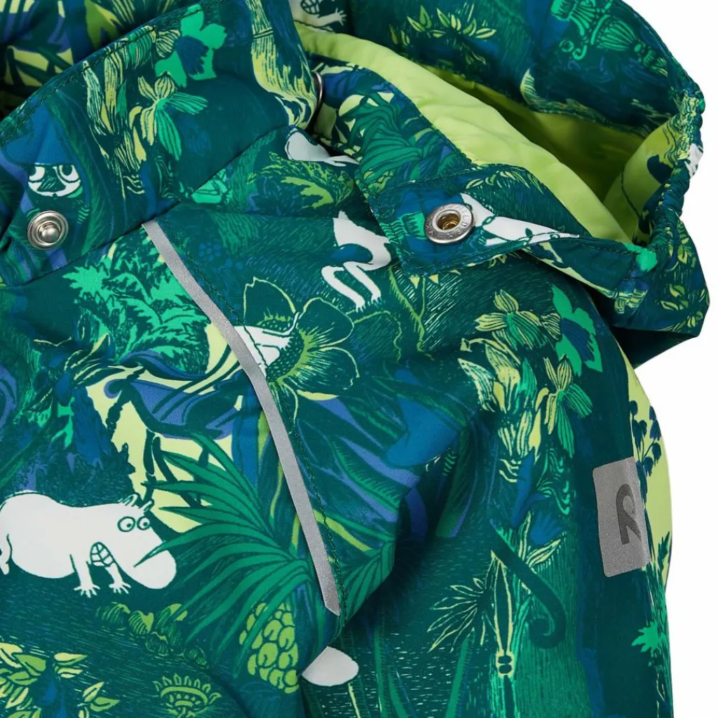 Wenn deine Kinder ebenso gerne wie die niedlichen Mumins auf der Jacke die Natur erkunden, sorgt die atmungsaktive Reimatec Jacket Moomin Hete für zuverlässigen Schutz vor Schauern, Wind und Schmutz.