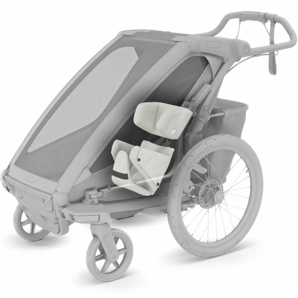 Für Kinder, die bereits sitzen können, ist der Chariot Baby Supporter 2.0 eine gute Ergänzung. Er lässt sich an den Gurten befestigen und erlaubt dank abnehmbarer Kopfstütze das Tragen eines Helmes.