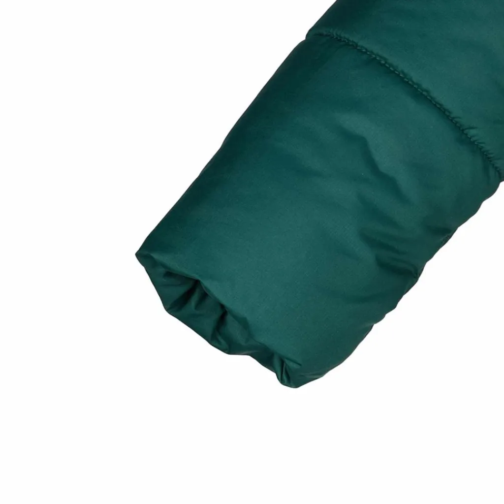 Damit deine Kids sich ohne Einschränkungen austoben können, ist das Außenmaterial der Isolationsjacke besonders strapazierfähig. Dank seiner speziellen Webart macht es so einiges mit. Warmgehalten wird dein Nachwuchs von einer recycelten Kunstfaserwattierung, die nicht nur in feuchtem Zustand noch Wärme spendet, sondern auch pflegeleicht ist. Gegen leichten Regen und Matsch ist die Jacke mit dem PFC-freien Eco Finish versehen und ist dadurch wasser- und schmutzabweisend.