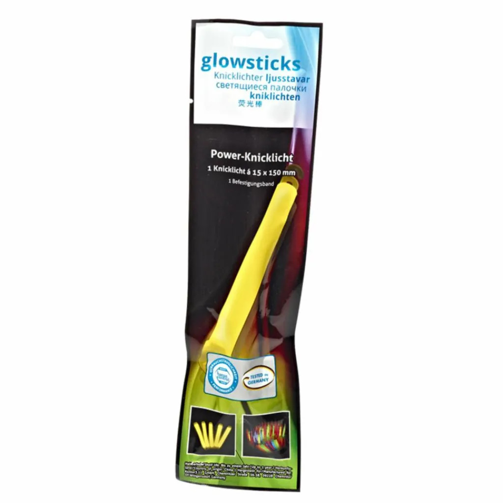 15 cm langes Knicklicht zum Markieren von Zelten oder für Partys. Mit praktischem Haken zum Aufhängen. Einfach leicht knicken, dann schütteln und schon leuchtet das Knicklicht für ca. 8 Stunden.