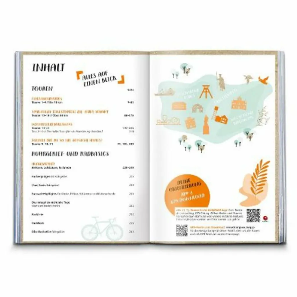 21 1/2 Tagestouren, Feierabend-Rides und Wochenend-Bikeaways führen authentisch und unkonventionell durchs Ruhrgebiet. Radelnd erschließt sich die Vielfalt des Ruhrgebiets zwischen modernen Industrie-Ikonen und alten Fachwerkhäusern. Auf Bahntrassen-Radwegen surren die Räder nur so dahin und entlang der vielen Wasserläufe radelt es sich besonders entspannt. Es geht zum Sundowner an den Rhein, durch das grüne Ruhrtal oder mit der handbetriebenen Fähre über die Lippe. Du radelst auf den Spuren der Familie Krupp durch Essen, erkundest weniger bekannte Ecken im wilden Norden und genießt fantastische Panoramen in den Emscherbergen oder vom Deich. Buch, herausnehmbare Karte und App oder GPX-Download verbinden Inspiration auf dem Sofa mit einfacher Navigation vor Ort.