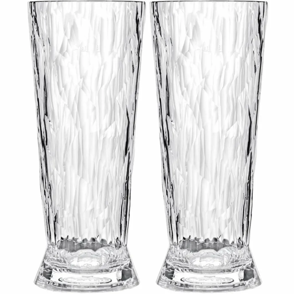 Großes Bierglas-Set aus Koziols Superglas. Sie sind nicht nur extrem robust, sondern besitzen auch eine leicht isolierende Wirkung und behalten ihr Aussehen auch nach langer Nutzungszeit.