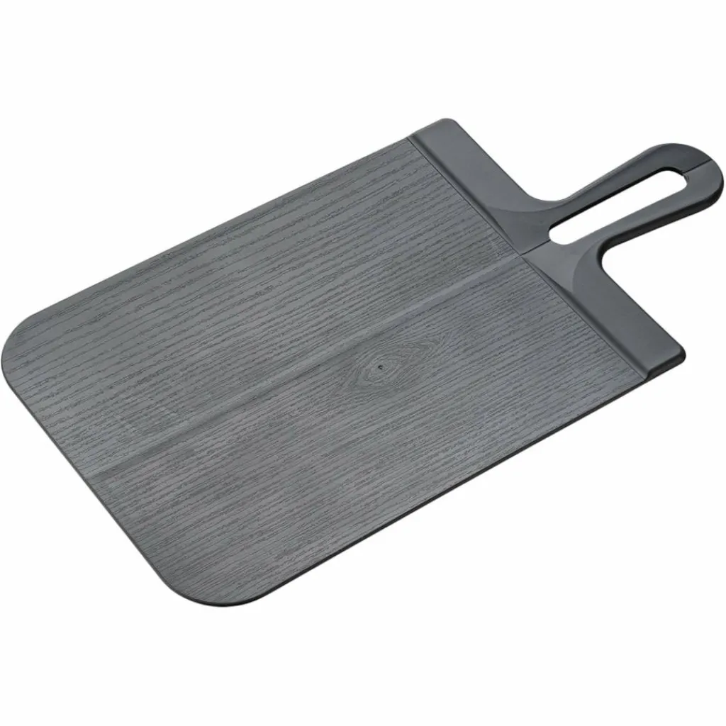Das Schneidebrett besteht aus biobasiertem Kunststoff und eignet sich durch seine Größe von 46 x 24 cm hervorragend für alle Schneidarbeiten in der Küche. Es ist schonend zur Messerklinge und lässt sich nach dem Schneidevorgang in der Mitte falten, um das Schneidgut sicher in Topf oder Pfanne zu schütten. Nach der Nutzung kann es unkompliziert in der Spülmaschine gereinigt werden. Die Aussparung im Griff erlaubt das Aufhängen an einem Haken.