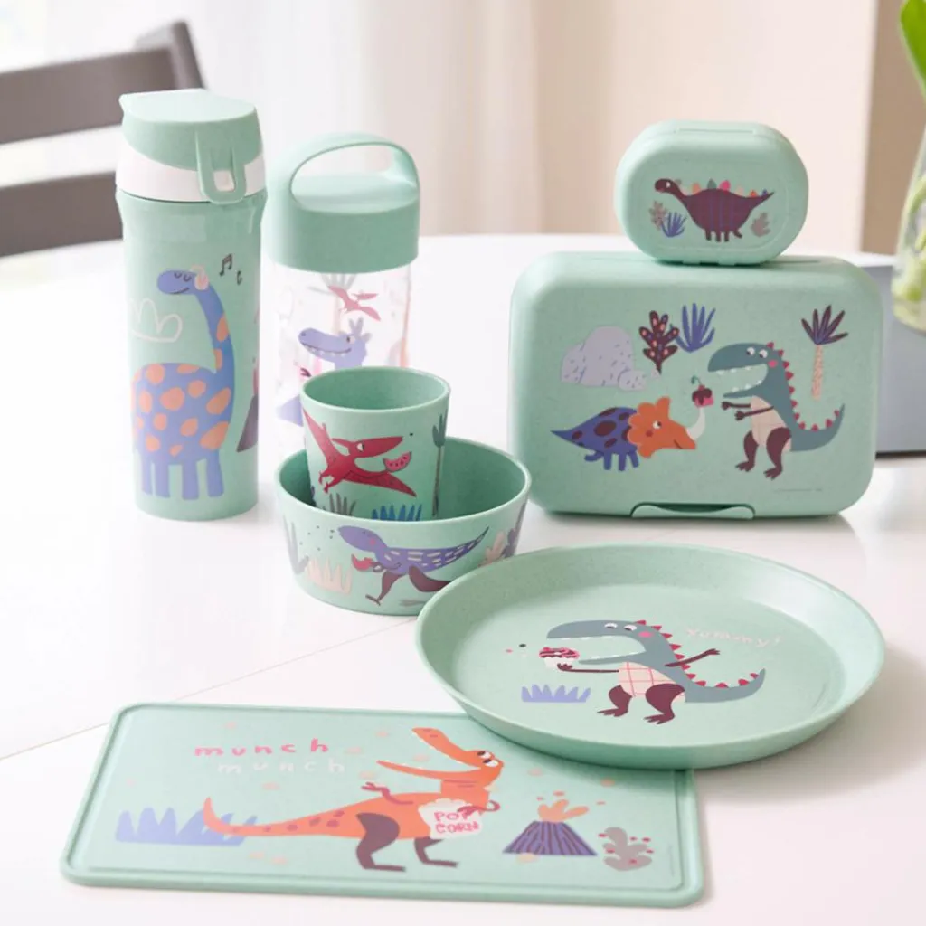 Der kleine Teller eignet sich gut für Obst oder Snacks und die Schale bietet ausreichend Platz für Müsli, Johurt, Brei oder andere kleine Gerichte. Der Becher ist kompakt gestaltet, lässt sich von kleinen Händen leicht greifen. Es wird bewusst auf einen Henkel verzichtet, um mit zwei Händen bewusstes und sicheres Trinken zu fördern.
