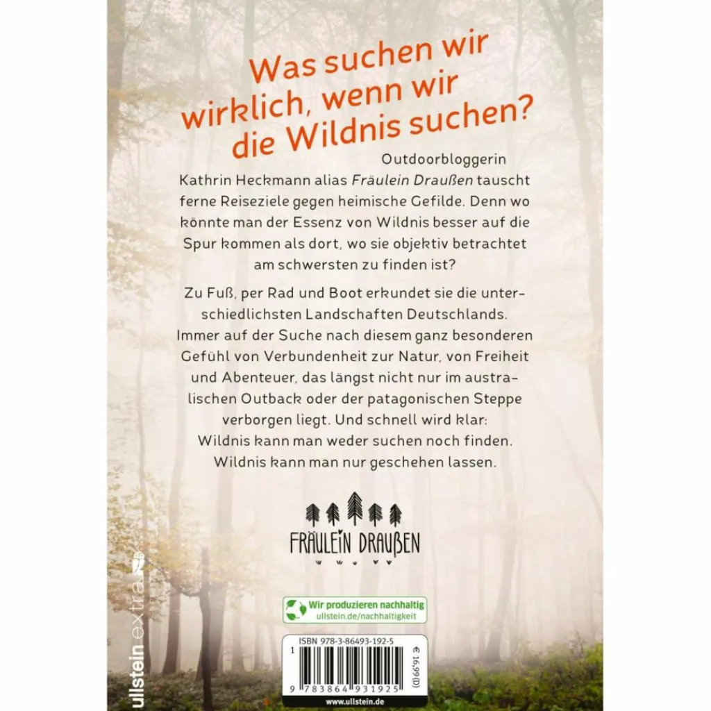 Die Sehnsucht nach Wildnis zog Kathrin Heckmann alias Fräulein Draußen jahrelang raus in die Welt. Aber muss man wirklich weit reisen, um die Wildnis zu spüren? Um das herauszufinden, tauscht Kathrin ferne Reiseziele gegen heimische Gefilde. Denn wo könnte man der Essenz von Wildnis besser auf die Spur kommen als dort, wo sie objektiv betrachtet am schwersten zu finden ist? Zu Fuß, per Rad und Boot erkundet sie die unterschiedlichsten Landschaften Deutschlands.