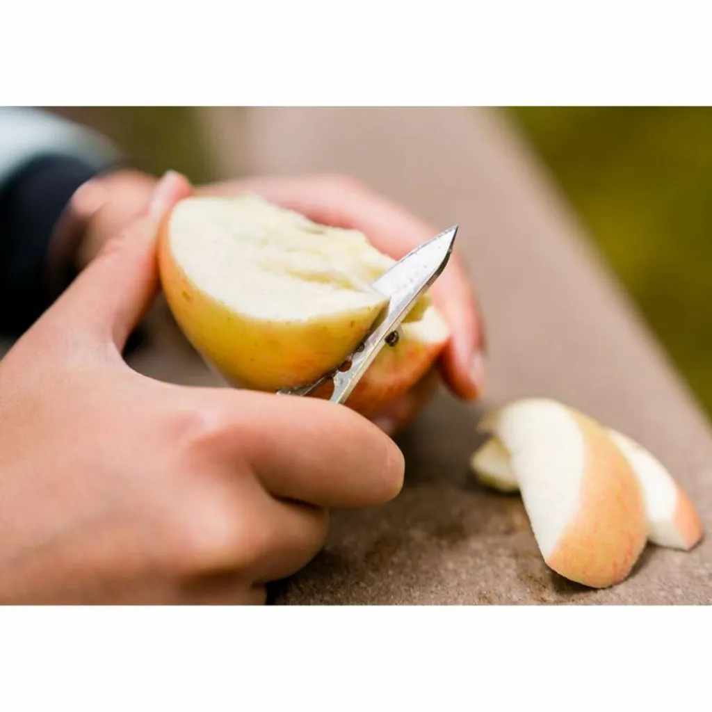 Mit einer Klingenlänge von 6,6 cm mit Wharncliffe Spitze und Glattschliff, ist das Skeletool KB universell einsetzbar und erledigt Schnitzarbeiten ebenso gut wie die Zubereitung des Abendessens.