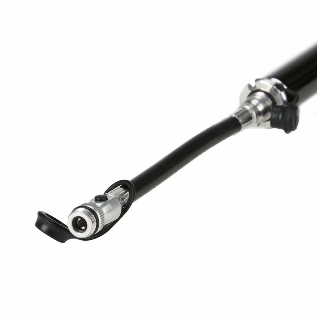 Kompakte Aluminium-Pumpe mit guter Pumpleistung. Dank des integrierten, zweiseitigen Flex-Schlauchs mit Sclaverand-Ventilaufsatz (Slip-Fit sowie Gewinde) lässt es sich bequem pumpen.