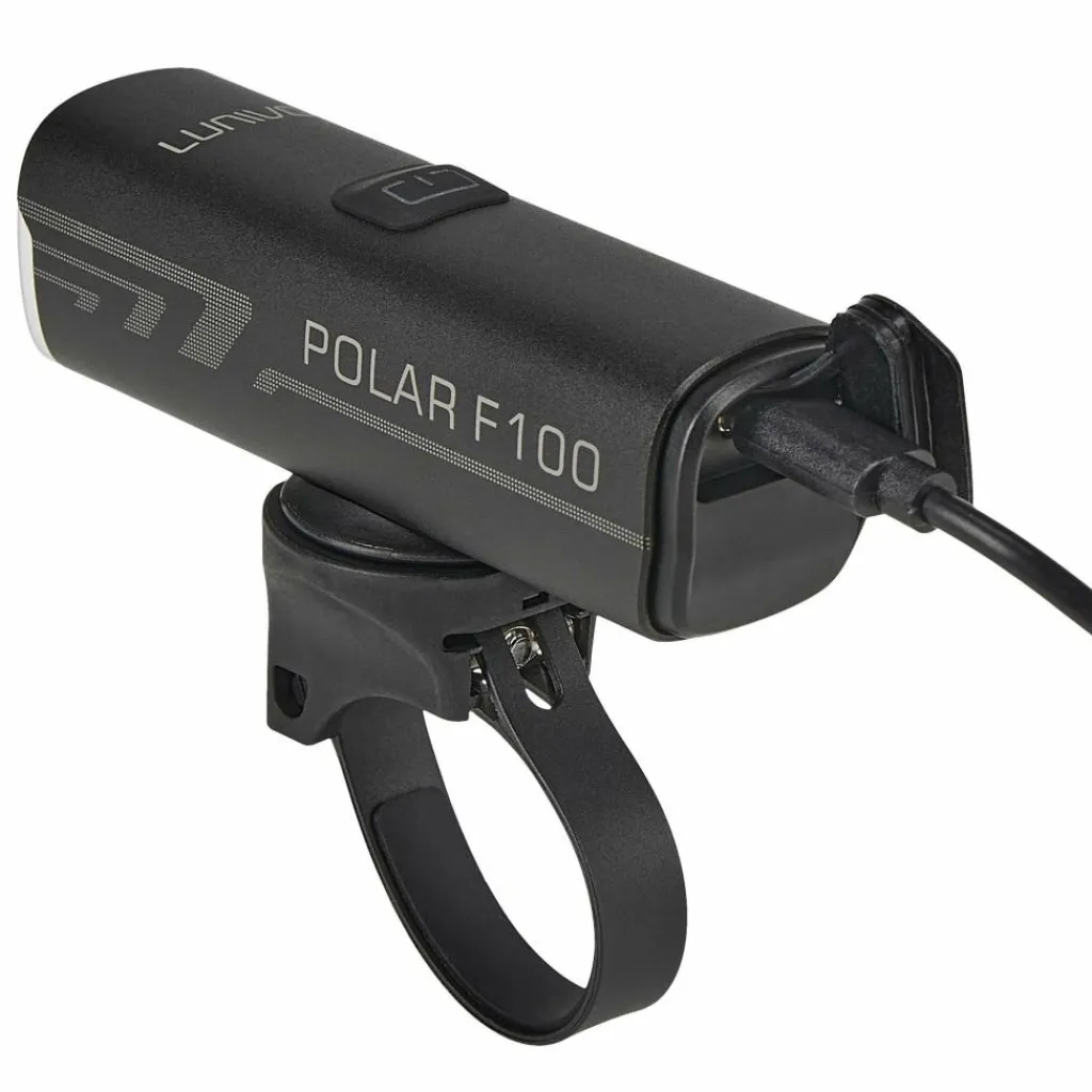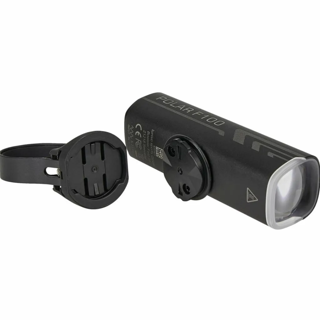 Polar F100 Alu Frontleuchte, Lenkerhalter mit 4 Bändern, USB-C Ladekabel, 3 mm Innensechkantschlüssel