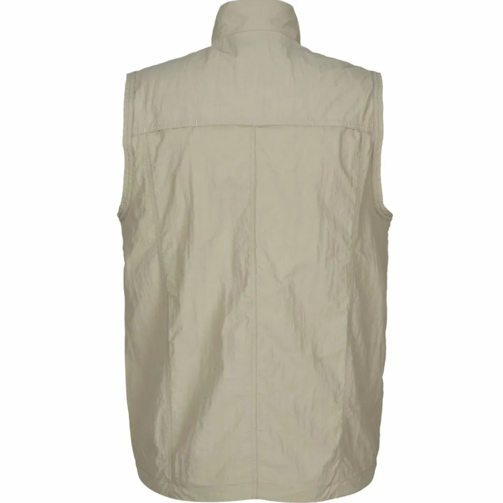 Die klassische Weste kann dank ihres robusten Polyamid-Gewebes so einiges ab. Optimal, wenn du dich bei deinen Wanderungen auch mal durchs Gestrüpp schlagen musst! Trotz des robusten Materials hat die Weste einen angenehm weichen Griff. Wenn du bei hoher körperlicher Belastung ins Schwitzen geraten bist, leitet das Gewebe die Feuchtigkeit zügig nach außen hin ab und trocknet dank seiner Dryprotec-Ausrüstung besonders schnell wieder. Am Rücken befinden sich abgedeckte Belüftungsöffnungen, die wohltuende Frischluft an den Körper lassen. Gleichzeitig hemmt die Silverplus-Ausrüstung die Bildung unangenehmer Gerüche, so braucht die Weste nicht ständig gewaschen zu werden.