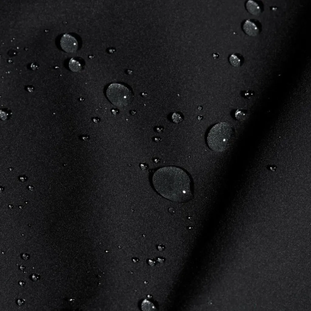 Die Softshelljacke besteht aus einem angenehm leichten, weichen Polyester-Material. Dank ihrer hohen Elastizität kannst du dich in der Jacke komplett frei bewegen. Sie ist zwar nicht winddicht, dank ihrer membranlosen Konstruktion aber dafür umso atmungsaktiver. Außerdem trocknet sie nach schweißtreibenden Etappen schnell wieder. Eine wasserabweisende DWR-Imprägnierung (<span style="text-align: left;" data-glossar-text="PFC (perfluorierte Kohlenwasserstoffe oder Fluorcarbone genannt) sind vollständig mit Fluor substituierte Kohlenstoffverbindungen, d.h., dass sie keine Wasserstoff-Atome mehr enthalten.