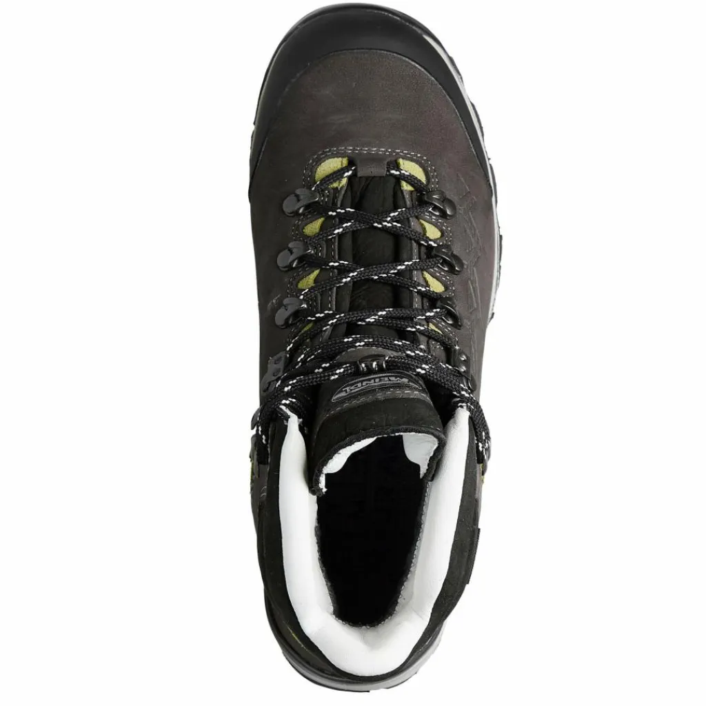 Das Obermaterial aus Nubukleder wird durch eine wasserdichte Gore-Tex Membran ergänzt. Damit bleiben deine Füße zuverlässig trocken. Eine Zehenkappe bietet zusätzlichen Schutz auf felsigem Untergrund, während die Vibram-Außensohle mit solidem Profil für sicheren Halt sorgt