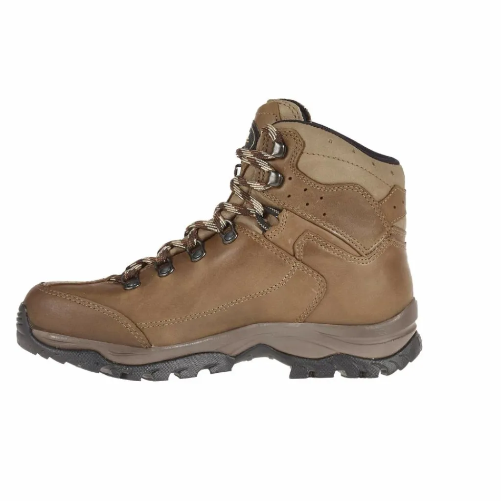 Außen zeigt sich bei diesem Wanderstiefel sattes Nubukleder. Innen kommt feuchtigkeitsleitendes Textilgewebe zum Einsatz. Die eingearbeitete Gore-Tex–Membran macht den Stiefel rundum wasserdicht. Die Sohlenkonstruktion dämpft und unterstützt gleichermaßen.